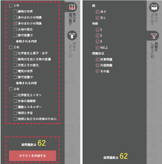 | 1 小テストを出題したい単元を選ぶ | |||